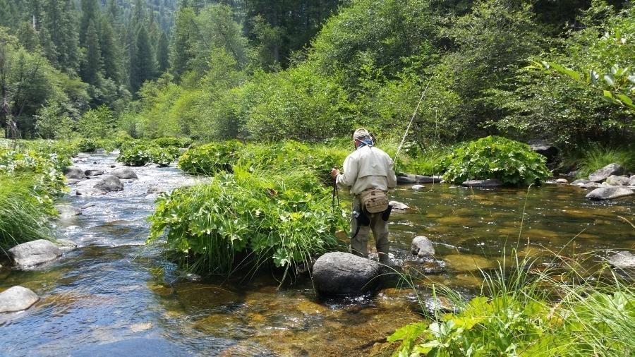 Gary and I decided to try our luck on the North Fork of the Mokelumne on the afternoon of Friday Augst 7th. We drove up Highway 88 and then down a freshly chip-sealed Ellis Road. I guess some of the fine PG&E paid regarding the Power Fire is being put to good use. We found a spot to park and then started making our way down stream.