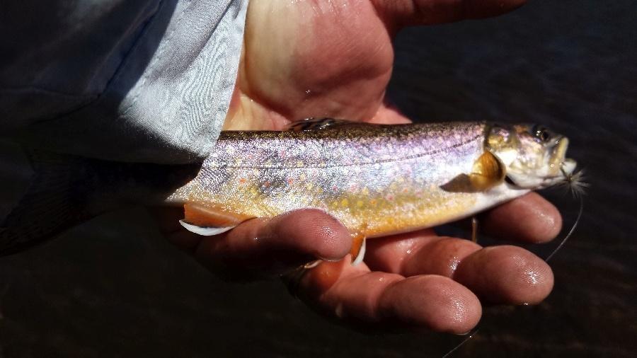 The water cleared up a little by the bottom of the upper meadow, but not quite enough. We flogged the water a little longer before deciding to head farther downstream in search of clearer water.